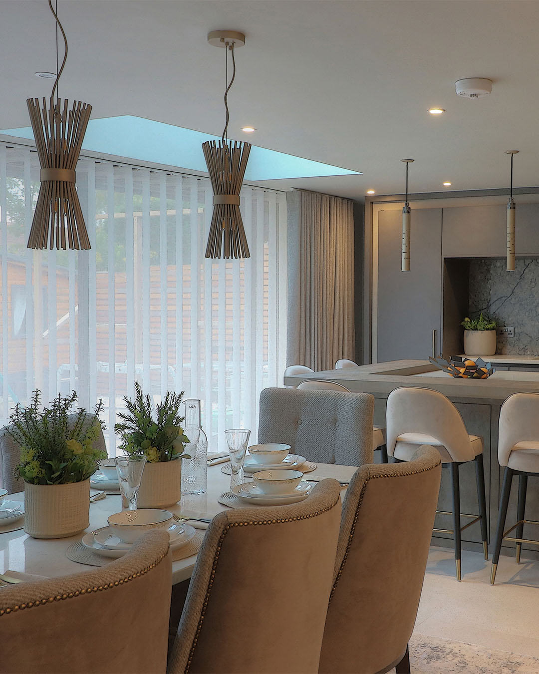 The simplicity of minimalist lighting design emphasizes the subtle beauty of the neutral palette, allowing the space to feel open, airy, and effortlessly stylish. Whether it’s bespoke lighting, linear pendants, or discreet under-cabinet illumination, minimalist lighting adds just the right amount of warmth and sophistication without overwhelming the space.
