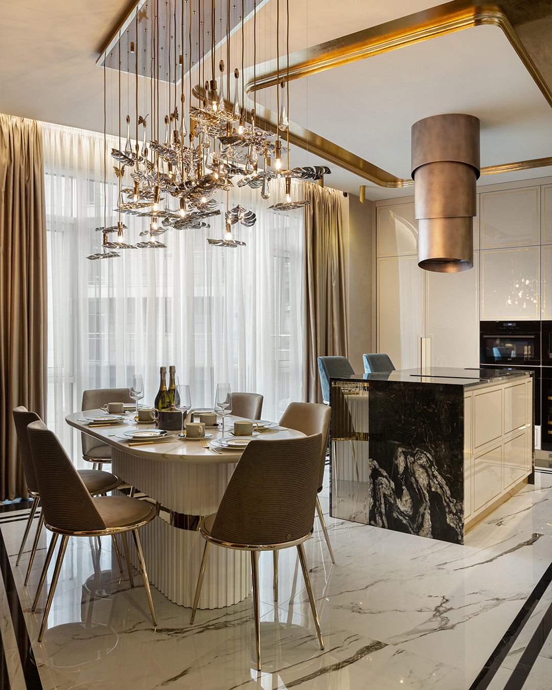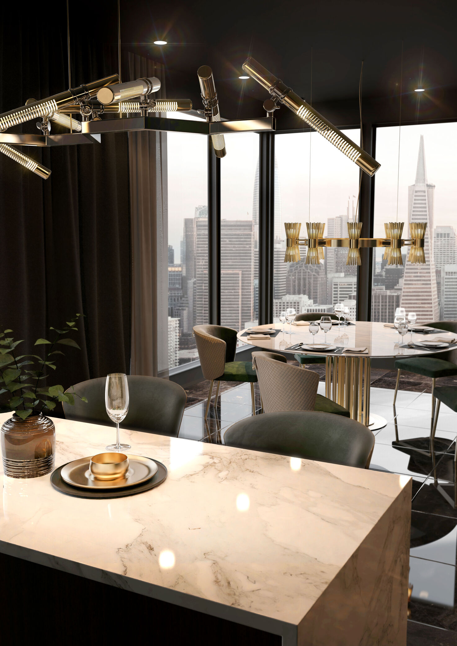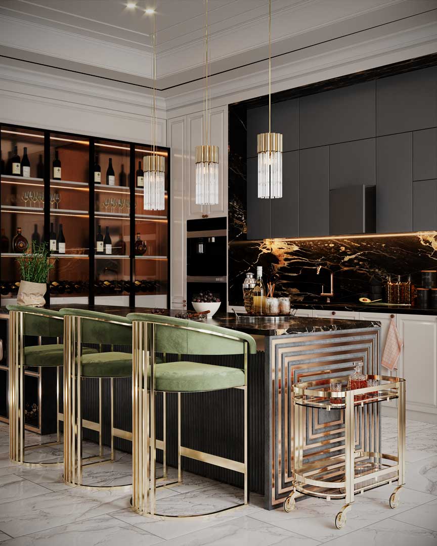 Let these curated ambiances be the source of your inspiration to redecorate and complement your kitchen with the ultimate furniture pieces and statement luxury lighting that create a luxurious interior concept.