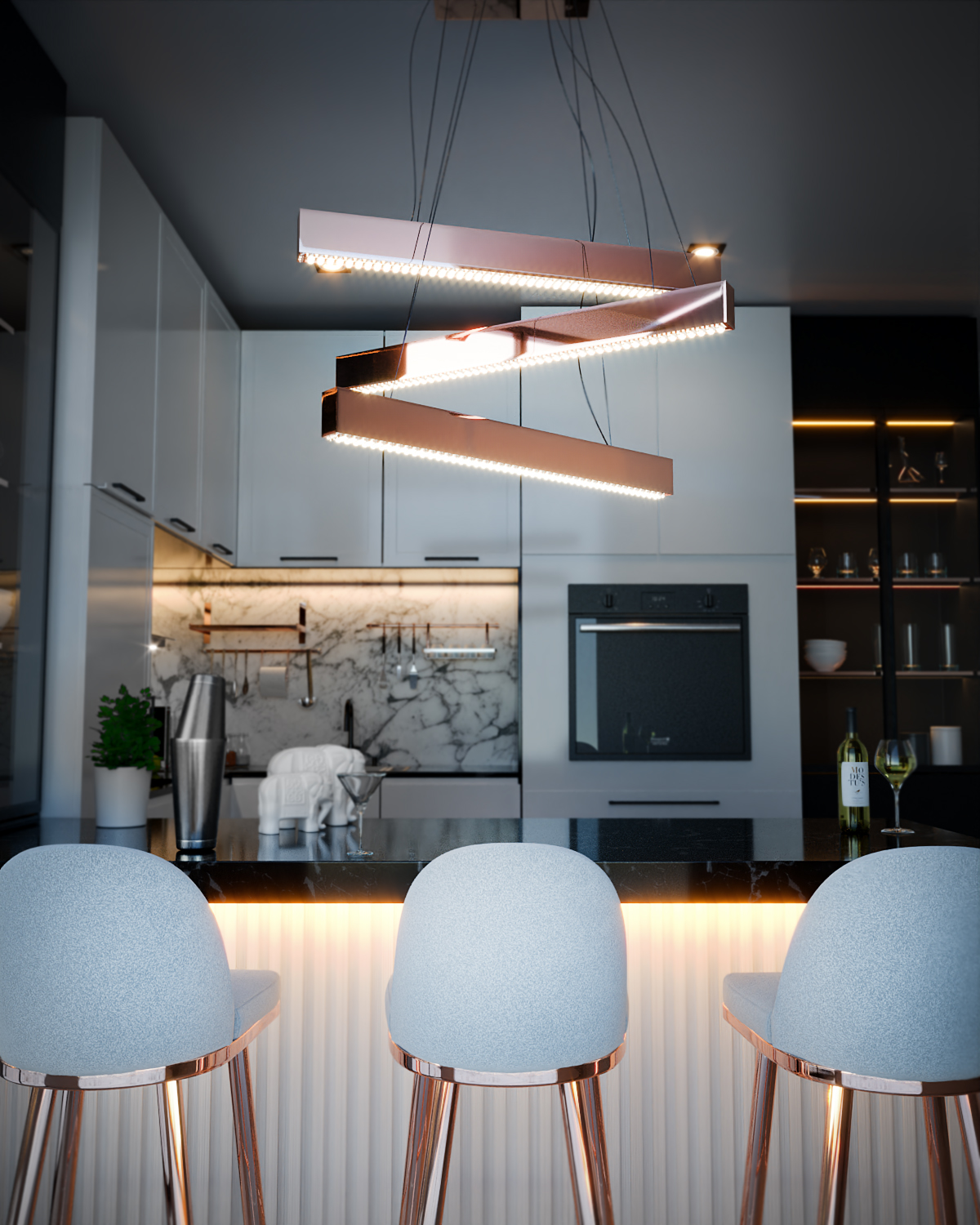 It perfectly fits to illuminate the living space, make the interior distinguished and more inviting, especially suited to contemporary styles. The copper finish can help you highlight a bespoke individuality of the interiors. This conceptual lighting design combo is just perfect to make a residence astonishing, sensational, and dramatic, reflecting an aesthetically pleasing and luxury lifestyle.